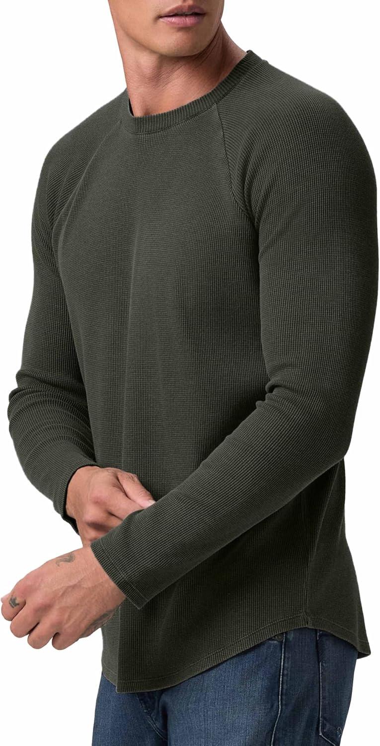 PAIGE Men’s Davies Long Sleeve Waffle Tee(Vintage Pine Needle)