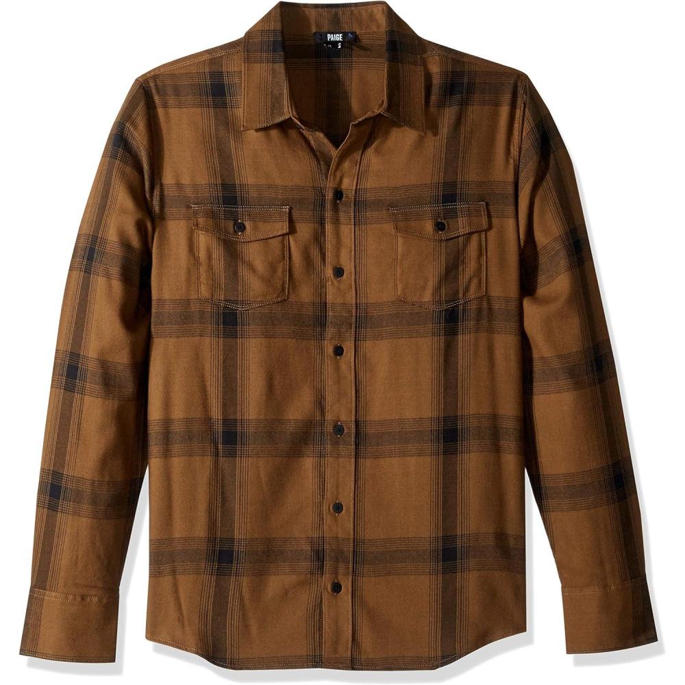 PAIGE Men’s Everett Brushed Cotton Button Down Shirt(Dark Honey)