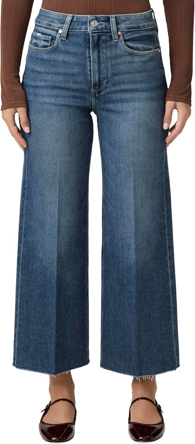This modern ultra high-waisted wide leg has an easy, relaxed fit and an ankle length silhouette. This style comes in a lived-in medium blue wash with whiskering, fading, and a raw hem. This pair is cut from our bestselling PAIGE Vintage denim, which takes all of the work out of breaking in your favorite pair of vintage jeans. We've combined the comfort of stretch with everything you love about authentic vintage denim to create super soft jeans that feel perfectly lived-in from the very first wear.