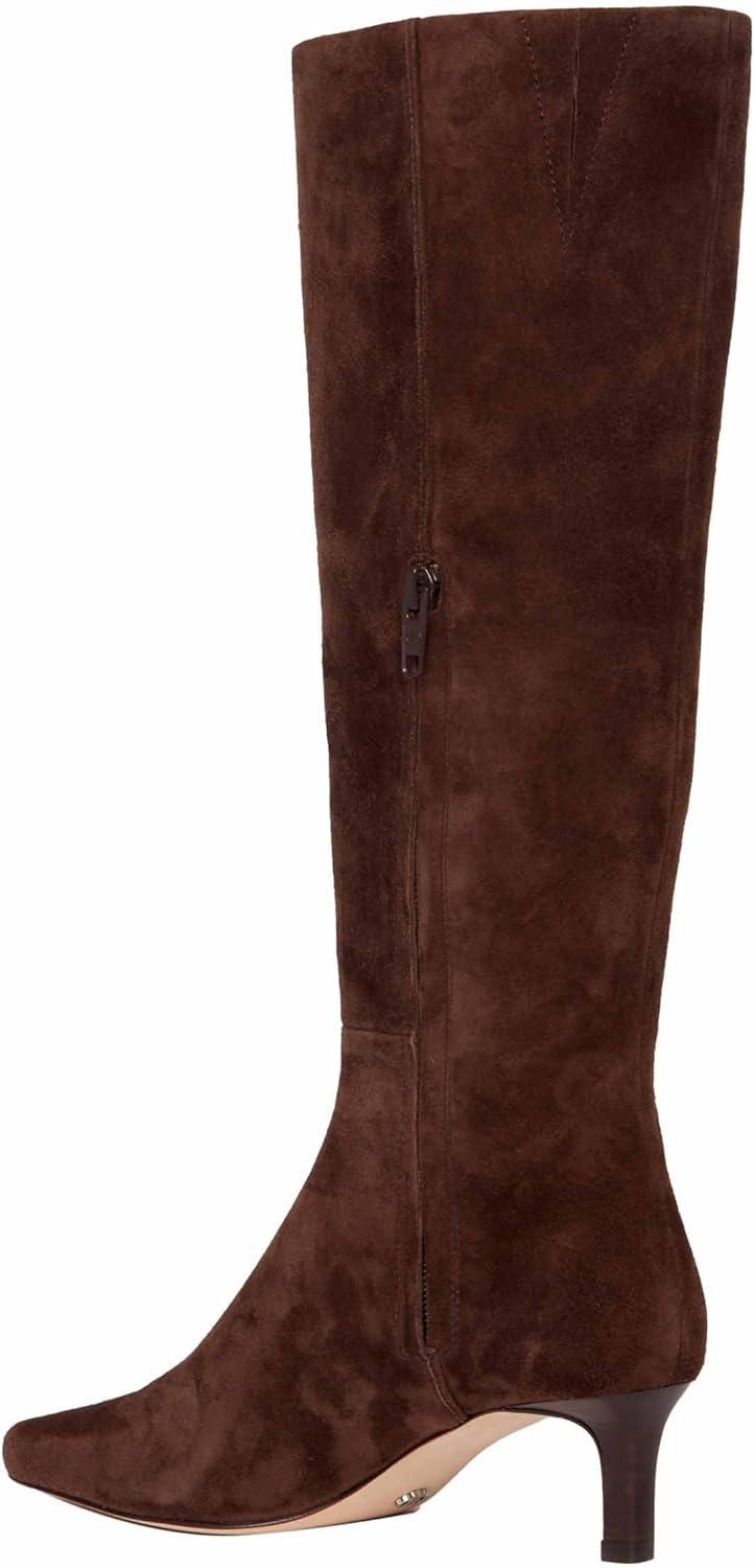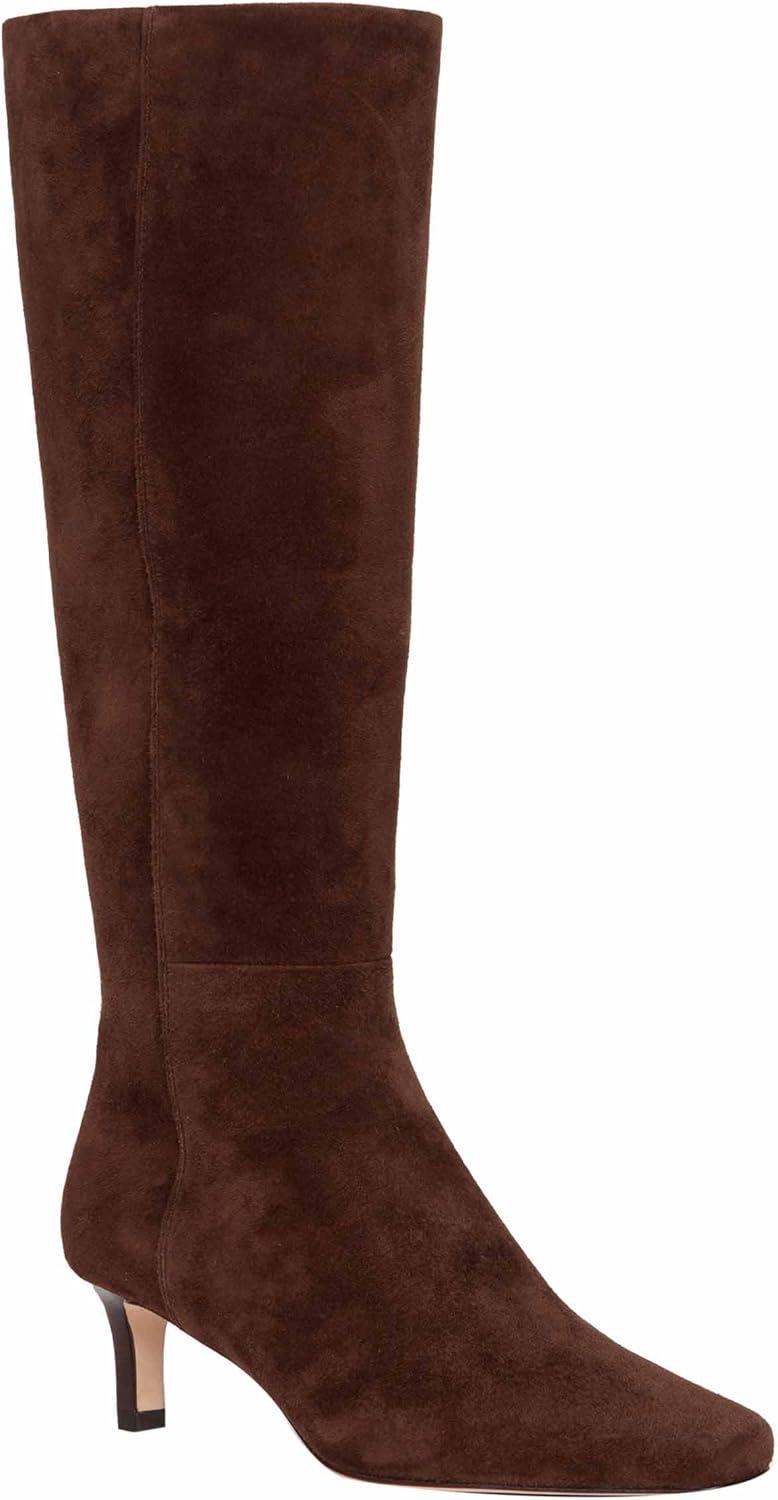 Take your outfit up a notch with Ansley. This kitten heel tall boot is crafted from soft chocolate brown suede with a slightly elongated, snipped square toe shape for a sophisticated and tailored look. Ansley features a straight shaft that pulls on easily for a flattering fit on the leg, micro piping edge detail down the shaft on both sides for an added bit of dimension, and a dark brown leather stacked slightly kicked-in heel. The tonal inside zipper allows for easy on and off.