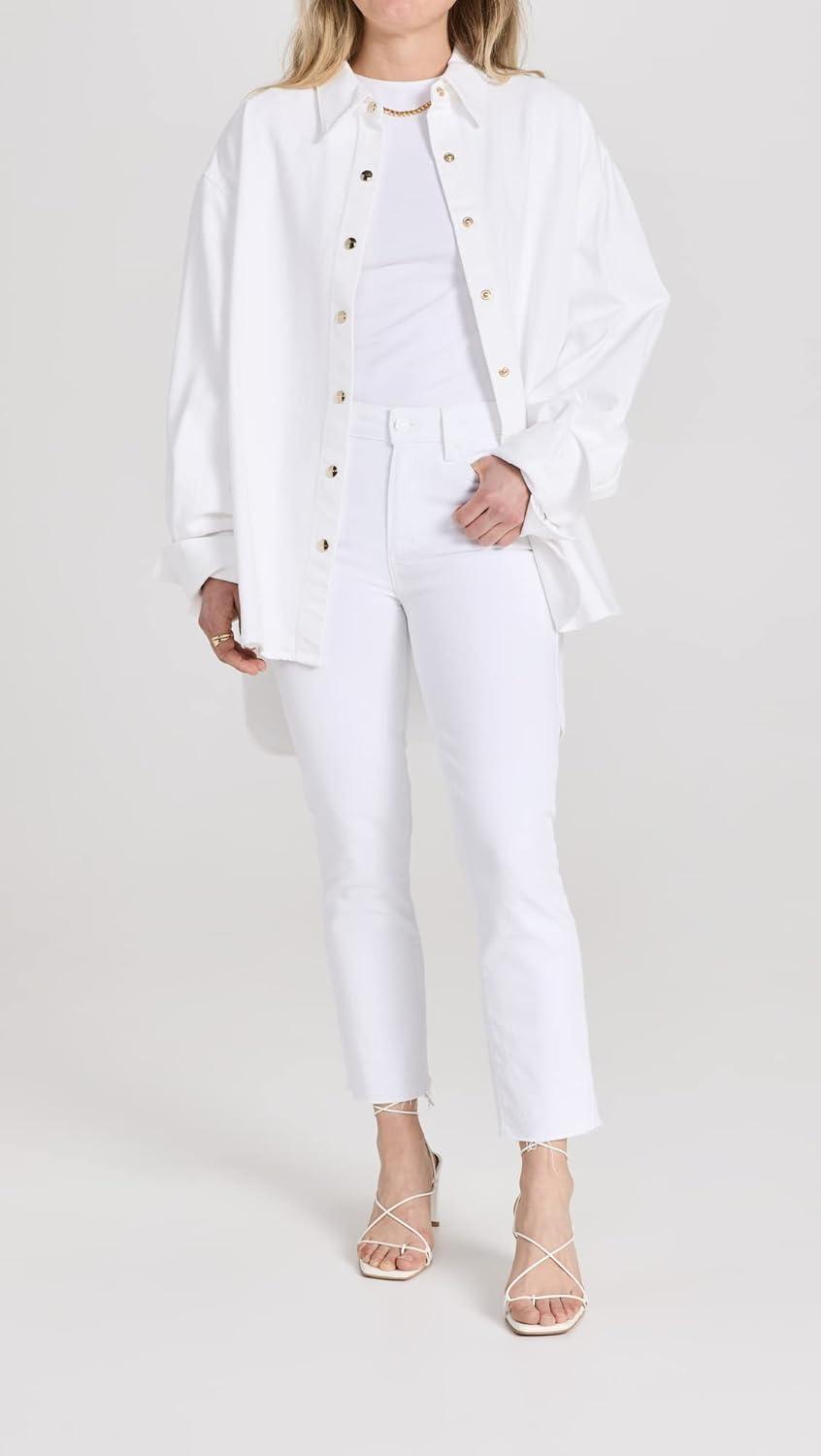 PAIGE’s petites collection features our favorite styles specially contoured to fit and flatter a smaller frame. Catering to women 5’ 4″ and under, our denim has been proportionally rescaled with a 2″ shorter inseam and higher knee and mid-thigh placements. From top to bottom, we’ve rethought and redesigned our bestsellers for our petite customer who’s looking for the same great fit. This high-rise perfectly straight leg comes in crisp white with a raw hem and is crafted from comfort stretch denim with plenty of coverage and the perfect amount of stretch.