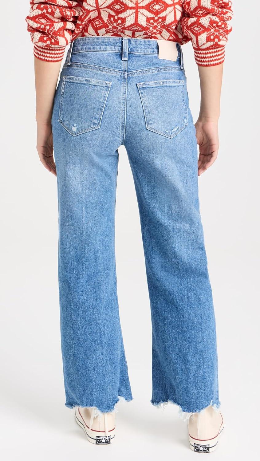 This sleek wide leg is designed with a high-rise, a flattering bow leg and an easy ankle length inseam that can be paired with any shoe heel height. This must-have pair is crafted in our customer-favorite PAIGE VINTAGE denim in a bright light/medium wash with lived-in details and a raw, destroyed hem. PAIGE VINTAGE takes all of the work out of breaking in your favorite pair of vintage jeans. We've combined the comfort of stretch with everything you love about authentic vintage denim to create super soft jeans that feel perfectly lived-in from the very first wear.