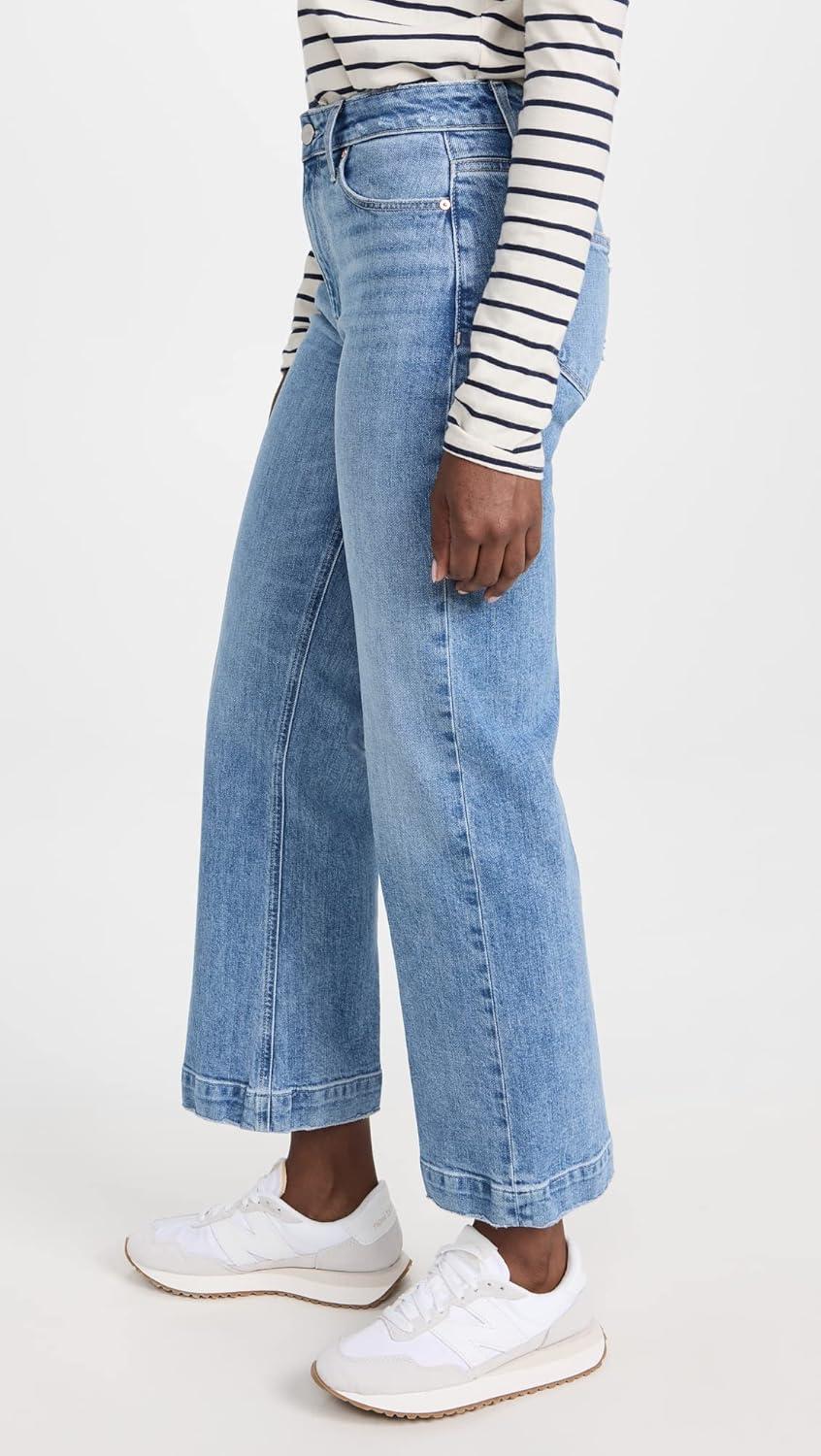 This sleek wide leg is designed with a high-rise, a flattering bow leg and an easy ankle length inseam that can be paired with any shoe heel height. This must-have pair is crafted in our customer-favorite PAIGE VINTAGE denim in a bright light/medium wash with lived-in details and a raw, destroyed hem. PAIGE VINTAGE takes all of the work out of breaking in your favorite pair of vintage jeans. We've combined the comfort of stretch with everything you love about authentic vintage denim to create super soft jeans that feel perfectly lived-in from the very first wear.