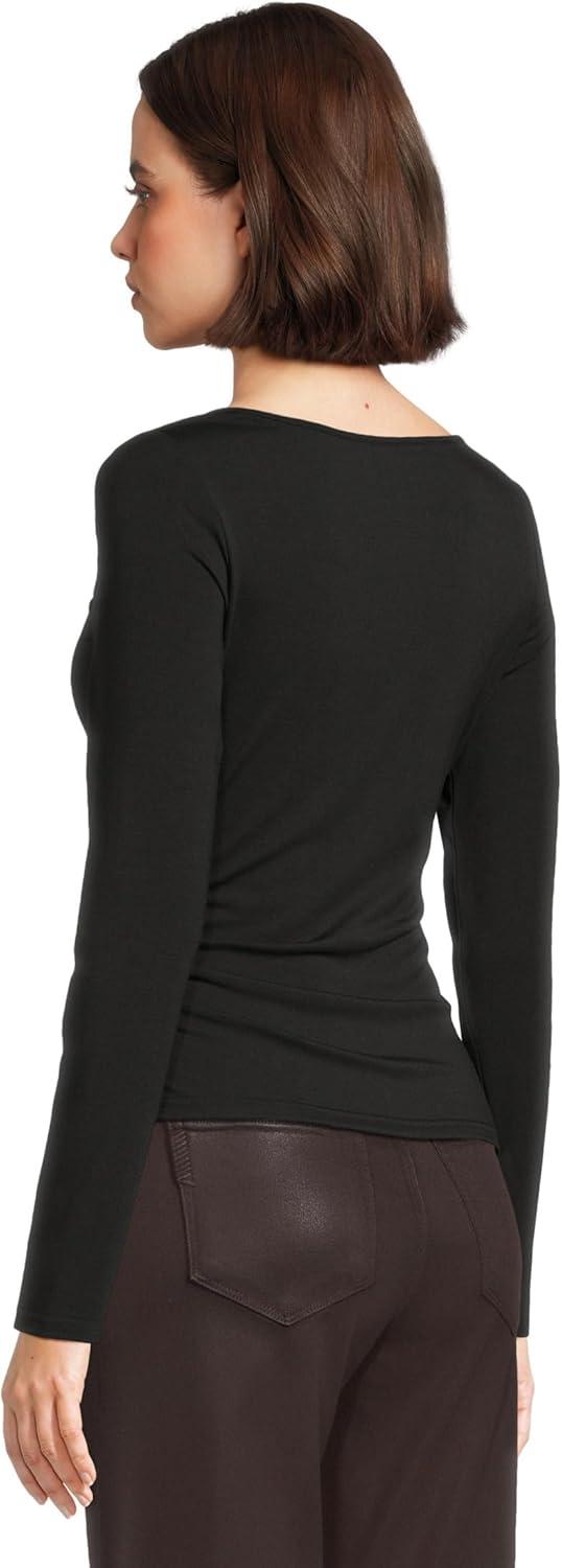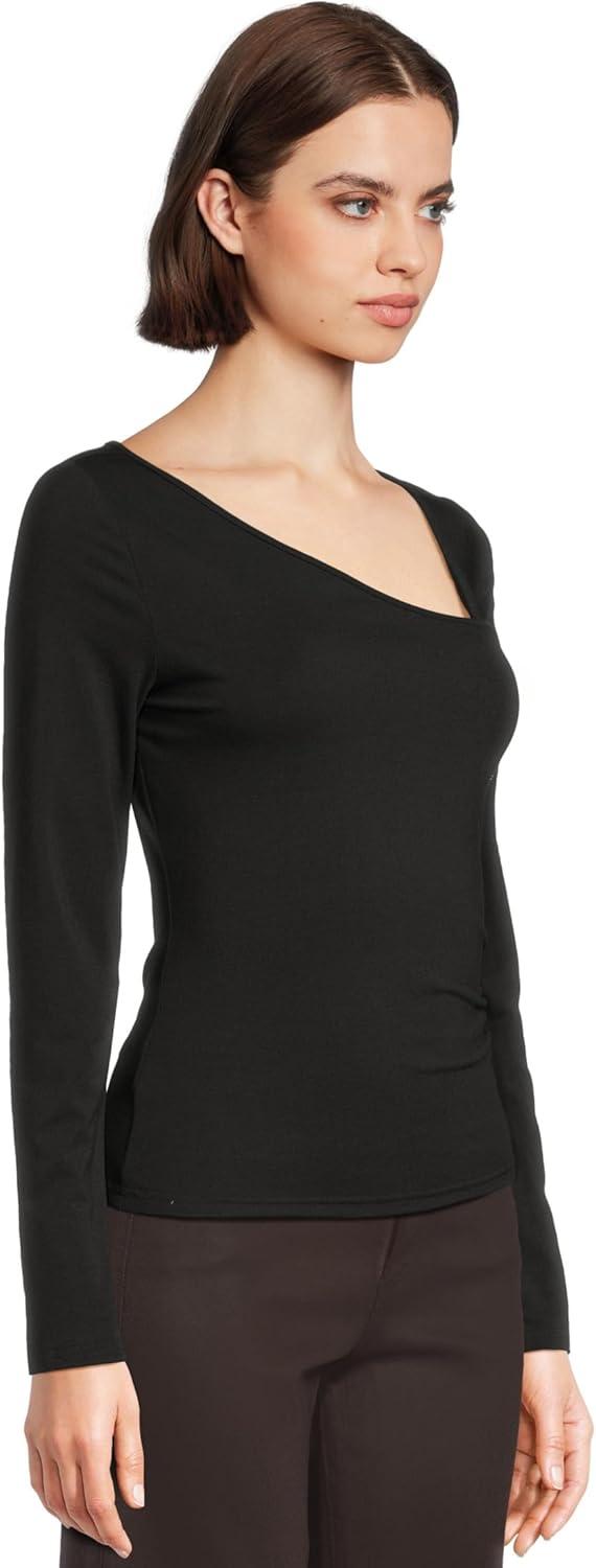 Made from soft, drapey jersey, this long sleeve top features an asymmetrical neckline and side ruching that creates a sleek, feminine shape. In classic black, the Leonna Top is a versatile piece that transitions seamlessly from day to night.