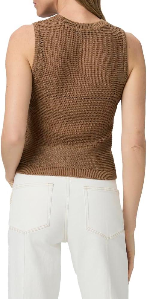 Thoughtfully designed to be open and airy without being too transparent or sheer, this black mesh stitch cotton crochet tank pairs perfectly with anything from trousers to denim.