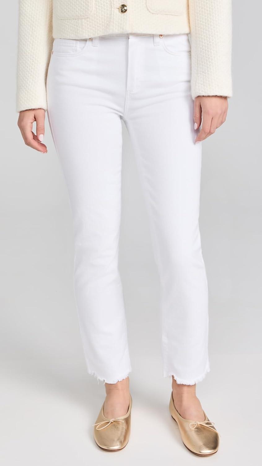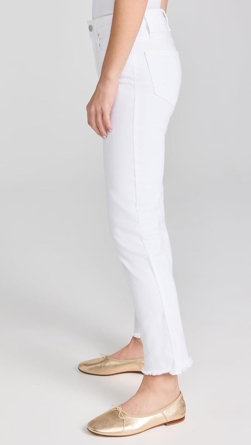 This high-rise, perfectly straight jean is lean through the leg and finishes at the ankle with a raw, destructed hem. Cut from our super soft white denim with a hint of stretch for comfort, this wardrobe must-have will be your new favorite year-round staple.